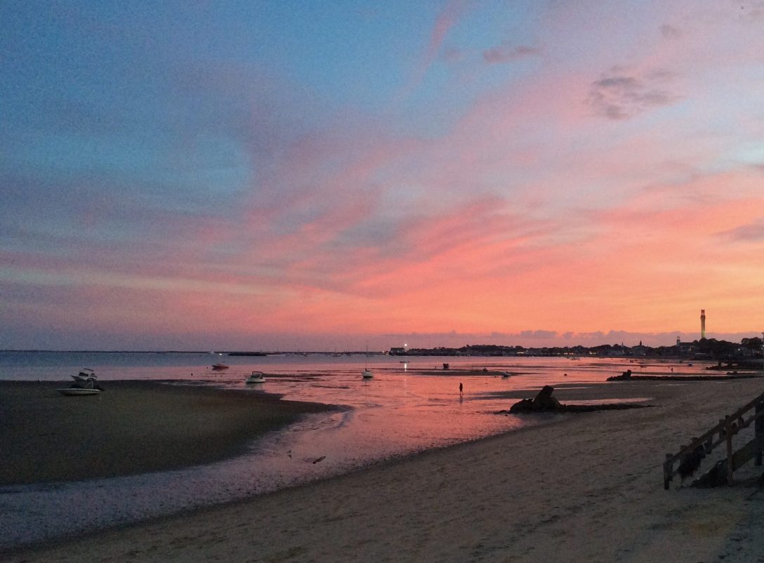 I went back to my Dad’s with my husband and daughter on our actual pre-planned trip and we all went to stay in Provincetown, a wonderfully liberal peninsula. The locals describe the sunrise and sunset as ‘the special light’. In the morning the tide is out so far that it feels like walking for miles out to sea. This is one of my ‘safe’ spaces in my inner world of memory and imagination, the other being the Dorset Coast with my dog – lying on a pebble beach with my eyes closed, the warm sun on my face, feeling secure against the firm stones, hearing the comforting sound of my dog paddling in the shallows, smelling wood smoke from the café behind us, refreshed by the cool sea breeze stroking my skin – as gentle as a feather, immersed in the senses and elements, content.